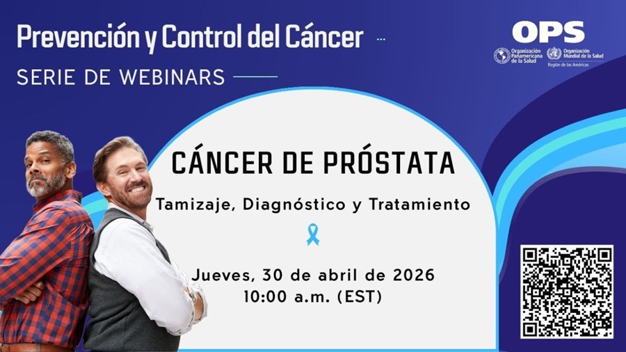 El próximo jueves 30 de abril de 2026, la Organización Panamericana de la Salud (OPS) inaugurará su nueva serie de webinarios sobre Prevención y Control del Cáncer con una sesión dedicada al “Cáncer de próstata: tamizaje, diagnóstico y tratamiento”. La iniciativa se desarrolla en alianza con la Sociedad Americana de Oncología Clínica (ASCO) y el UT MD Anderson Cancer Center, y contará con interpretación simultánea en español e inglés.